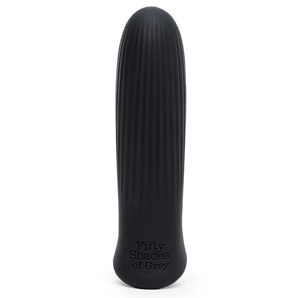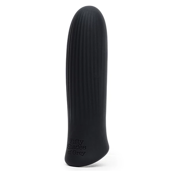 โ Smooth, black silicone bullet vibrator with a ridged texture for pinpoint stimulation