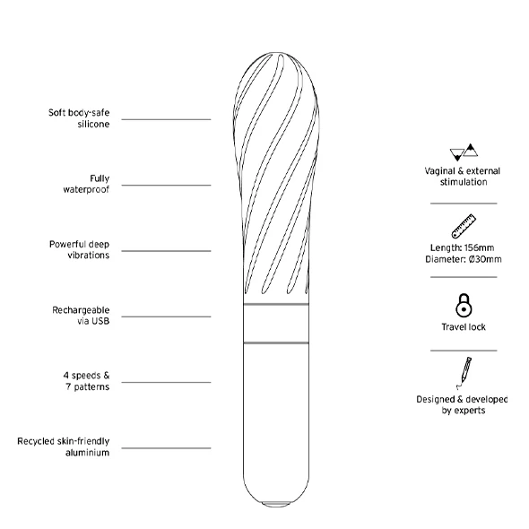 Do you like to feel different sensations deep inside? With a textured surface, powerful vibrations and a uniquely contoured head, GrΓ‘ will fill you with pleasure and leave you wanting to explore more. GrΓ‘βs pattern and texture invites you to explore internal and external stimulation while rumbling through its multiple speeds and patterns.